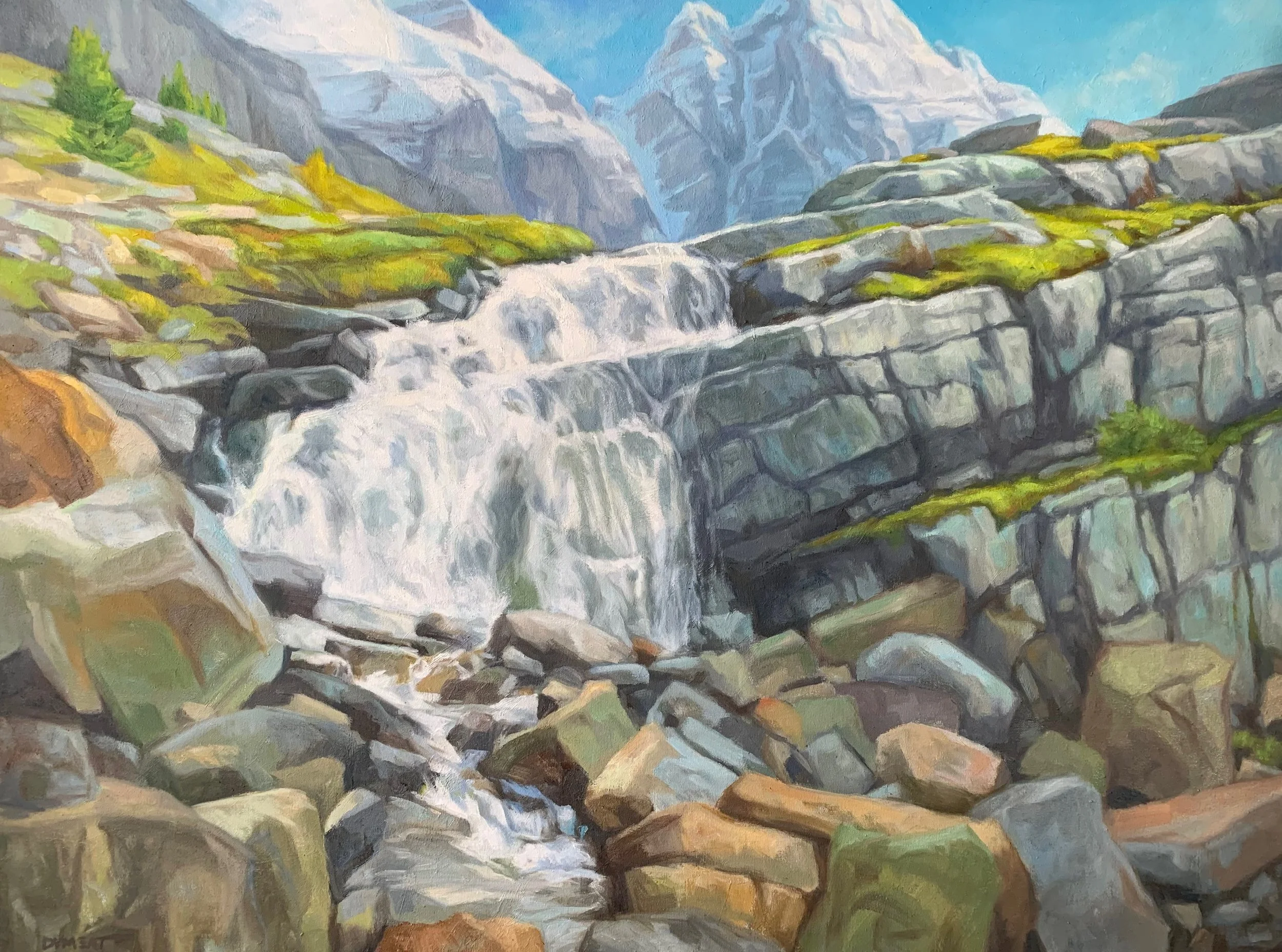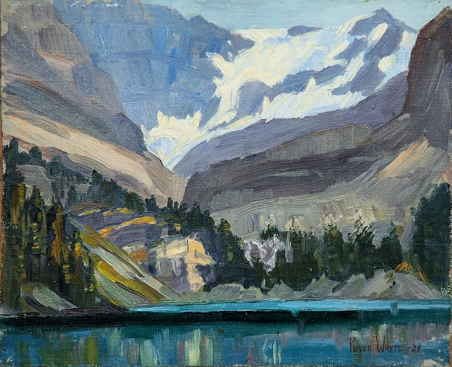 Since the Canadian Pacific Railway reached Hector, BC in 1884, plein air pioneers have hiked or ridden on horseback to paint the rugged peaks and emerald lakes. The CPR encouraged artists like F.M. Bell-Smith and A.C. Leighten by giving them free rail passes so their work could popularize the area for the growing tourism market. They could camp at the lakeshore or, after 1919, at the Elizabeth Parker Hut built by the Alpine Club of Canada. Group of Seven artists J.E.H. MacDonald, Lawren Harris and Arther Lismer all painted Lake O’Hara. MacDonald in particular was so enamoured of the landscape that he spent seven summers there, creating more than 200 sketches and paintings. Other artists included Carl Runguis, Walter J. Phillips, John Singer Sargent, Peter and Catherine Whyte, Belmore Brown, and a steady stream of more contemporary artists inspired by the landscape and their legacy of works.